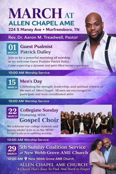 We are truly grateful for the opportunity to serve this wonderful church and community. At Allen, we believe everyone who joins us brings something special to our shared journey of faith and service. It is our hope that you will find a welcoming atmosphere, meaningful worship, and a genuine sense of belonging here. We invite you to come, connect, and grow with us as we continue the work God has called us to do together. At Allen, We Are Expecting Miracles.
